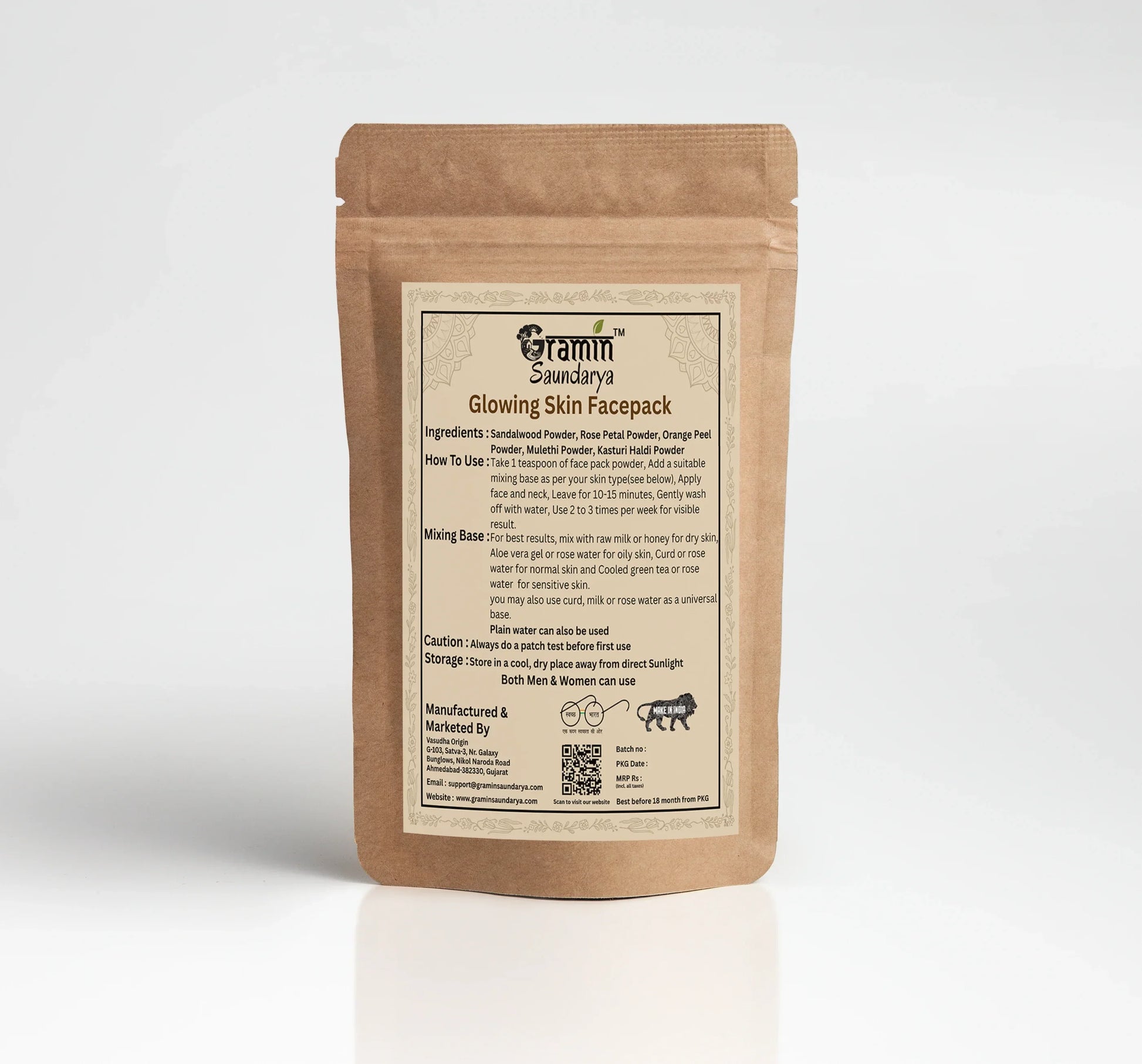 Bring back your skin’s natural glow with Gramin Saundarya’s Glowing Skin Face Pack, a 100% natural Ayurvedic blend made from handpicked, chemical-free ingredients. Perfect for all skin types, this face pack works to brighten, soothe, and rejuvenate your skin—giving you a salon-like glow at home.