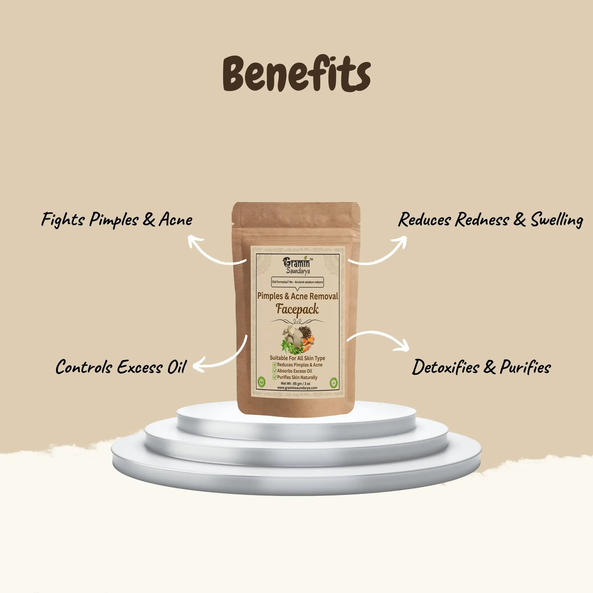 ✔ Pimples & Acne Removal Face Pack – Fights breakouts, absorbs excess oil, and purifies deeply.